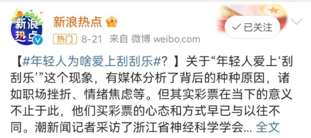 自从年轻群体中彩票之风日渐盛行,就有不少专家、媒体分析了这一现象的背后原因,有说是职场压力、情绪焦虑,也有说是单纯娱乐或是成瘾……