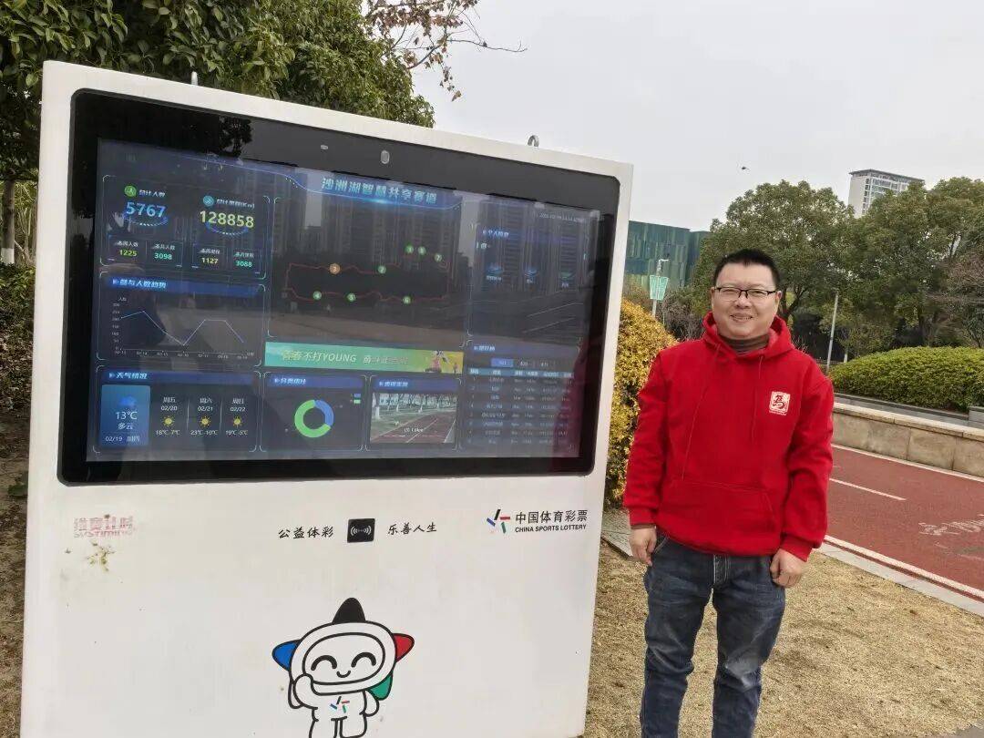 2月20日一大早,苏州张家港市沙洲湖公园的智慧共享健身赛道旁,顾敏峰见到在这里蹲守多时的记者,一眼认出记者是个“熟人”,指着边上竖立的那块一人多高的智能统计显示大屏,说道:“我是老顾,两年前你采访过我。”
