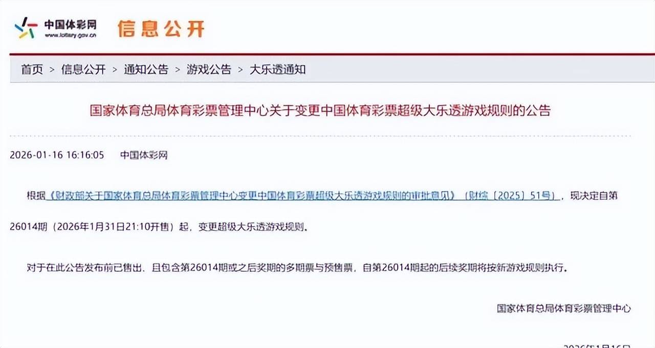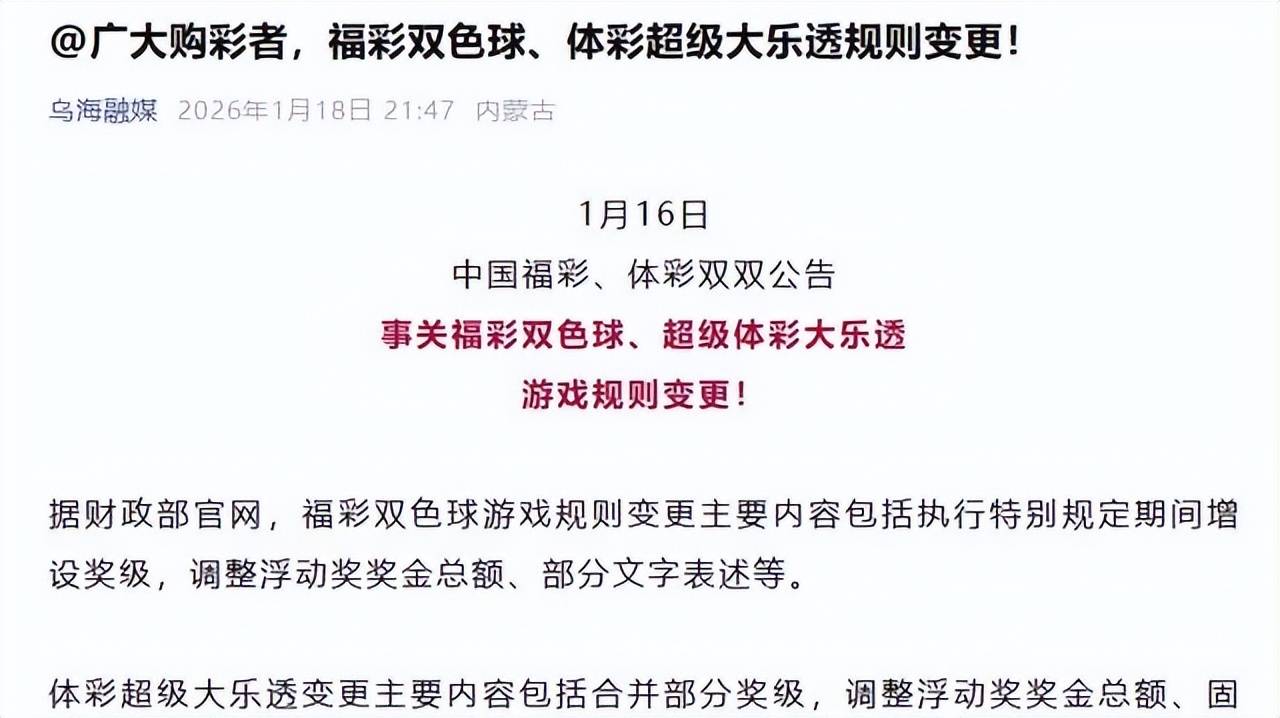 面对这种断崖式的下跌,相关部门坐不住了。2026年1月16日,中国福利彩票发行管理中心与国家体育总局体育彩票管理中心联合发了公告,推出了一套被业内称为"近三十年力度最大"的彩票新规,2月起正式落地。到现在实施了一个多月,我们来看看它到底改了啥。