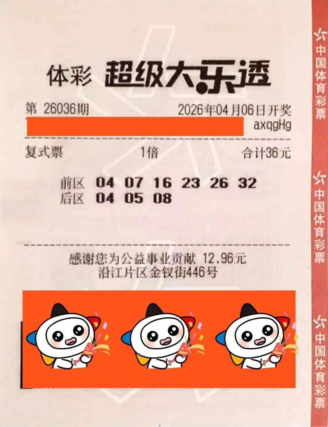彩票,彩票平台,彩票网站,彩票APP下载,六合彩,快三机选的时候,换了几组数字,选了其中一组有“眼缘”的,真的中了大奖!这事儿发生在4月6日,体彩大乐透第26036期开奖前。当晚,大乐透开奖,全国共中出9注一等奖,单注奖金629万元。