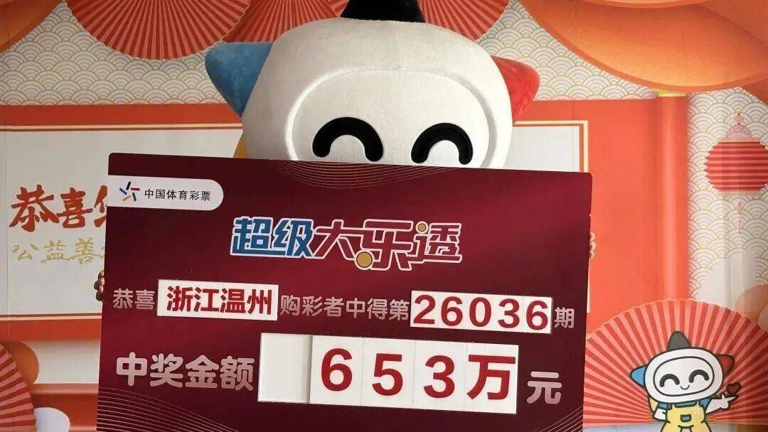 温州购彩者龚先生(化姓)幸运揽获其中1注,因是复式投注,单票擒获奖金653万元。
