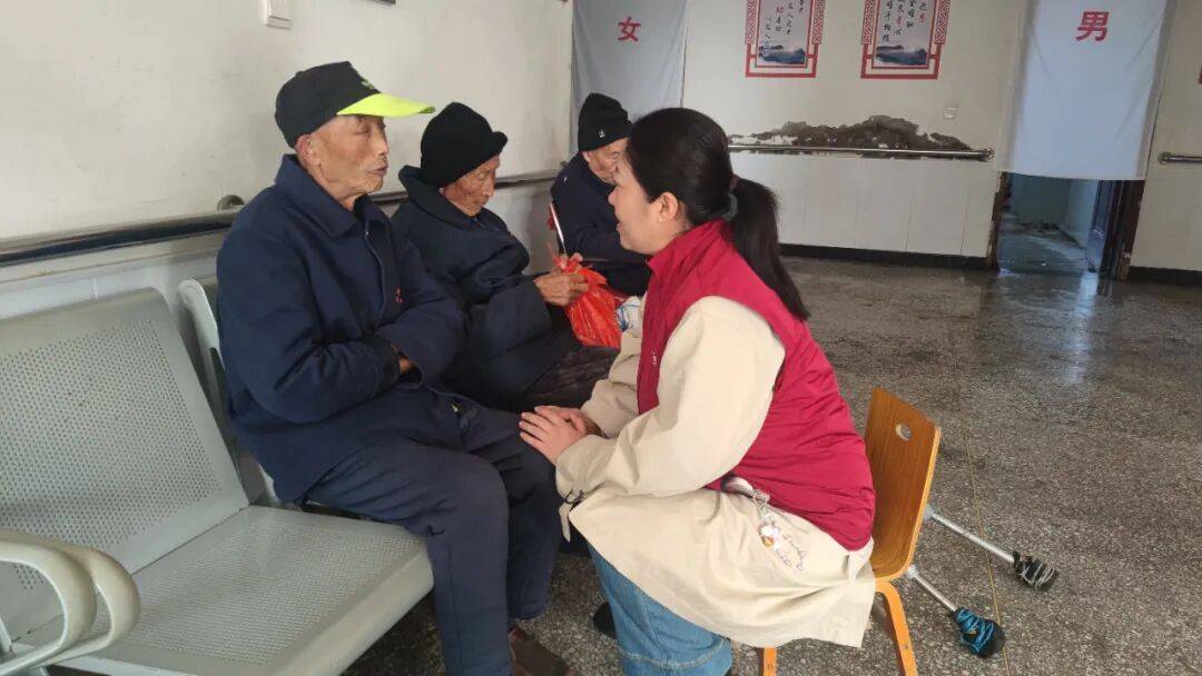 除了赠送慰问品,一行人还拉起老人的手,和他们亲切地拉家常。“大爷,你身体咋样?一顿能吃多少饭?”36岁的任蒙蒙是叶县福彩一家站点业主,她每到一个房间,都亲切地与老人互动,逗得老人哈哈大笑。